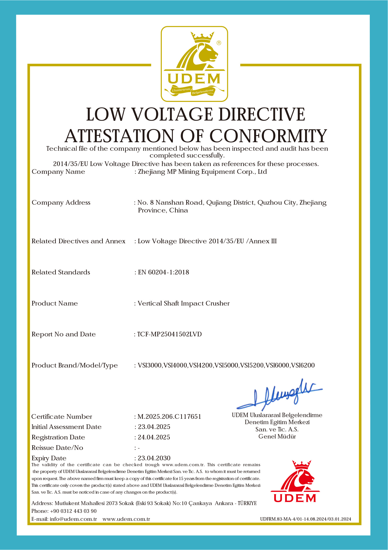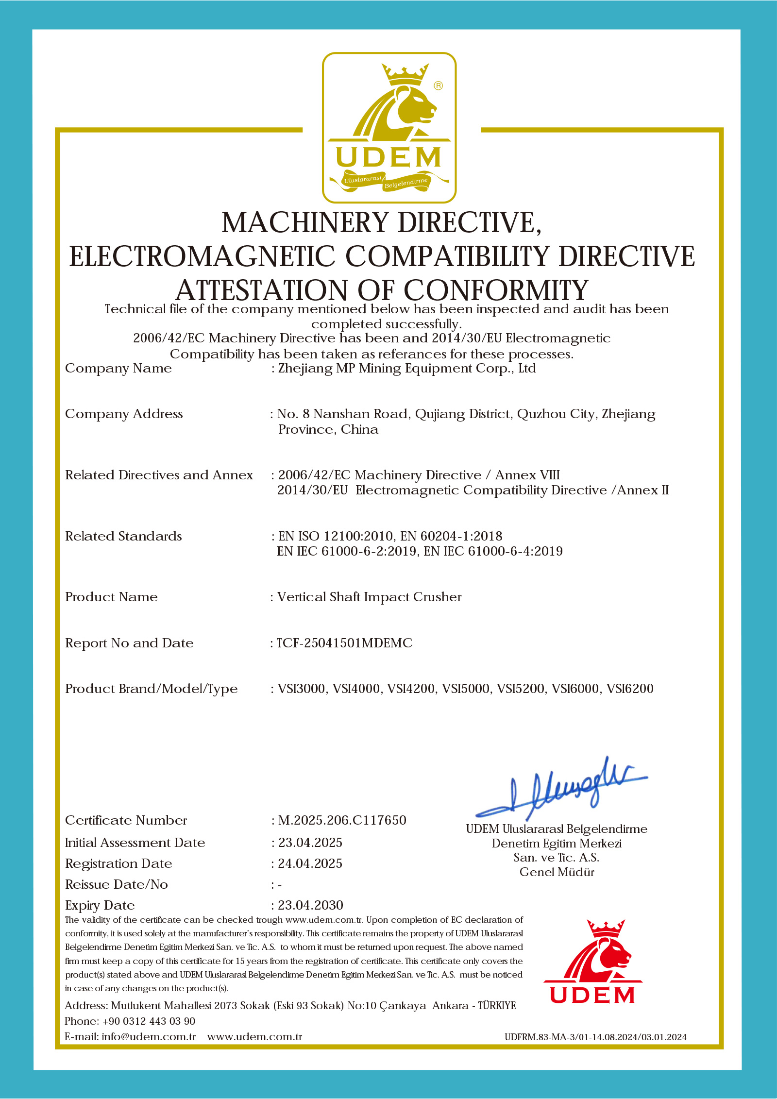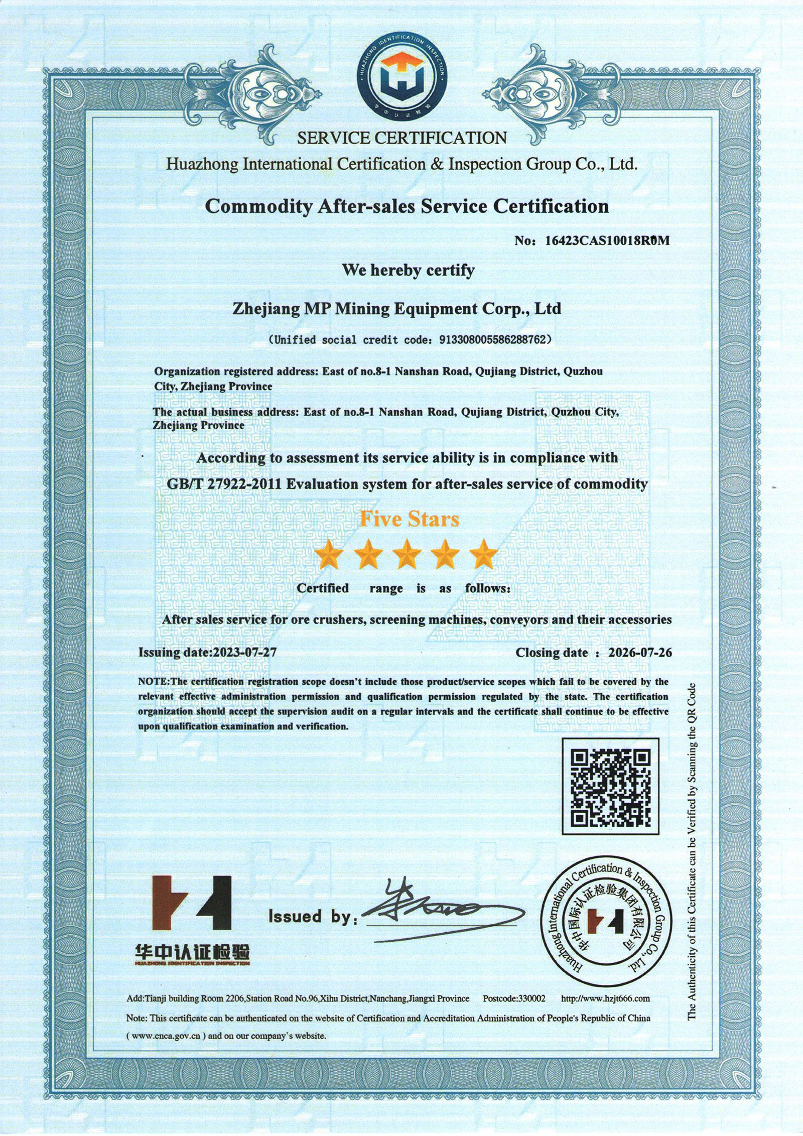 Zhejiang MP Mining Equipment Corp., Ltd (formerly Quzhou MP Mining Machinery Co., Ltd.) is a technology enterprise specializing in R&D, production, sales and service of high-end crushing equipment. Established in July 2010, it is located at No. 8 Nanshan Road, Qujiang District, Quzhou City, Zhejiang Province. It covers an area of more than 50 acres and has a registered capital of 22.325 million yuan. We have more than 110 employees, of which 36.36% are college graduates or above. R&D personnel accounted for 16.36% of the total number of employees. Mining Partner passed the ISO9001:2015 international quality management system certification. In September 2015, Mining Partner's stock was listed on the NEEQ China (stock code: 833507).